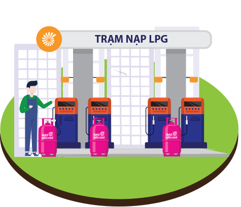 Bao gồm 17 trạm nạp LPG với công suất 19.000 tấn/tháng, trải dài từ Cà Mau đến Nghệ An. Được phân phối qua xe bồn chuyên dụng và LPG chai.